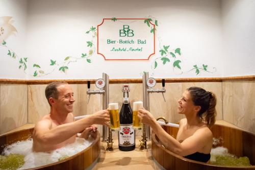 These rooms have a balcony, satellite TV, and a bathroom with a shower and toilet. The special offer includes: - 2 overnight stays including breakfast - sauna, infrared cabin, steam bath and hot plunge bath use served with 1 beer - 1 massage and the use of the indoor swimming pool and hot tub - 1 4-course menu with beer