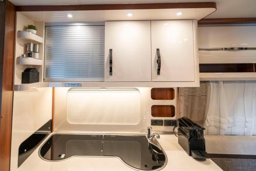 Boasting a private entrance, this mobile home includes 1 bedroom and 1 bathroom with a shower. Meals can be prepared in the kitchenette, which is fitted with a stovetop, a refrigerator, kitchenware and a microwave. The mobile home offers a coffee machine, a seating area, a wardrobe, heating and a flat-screen TV. The unit has 1 bed.