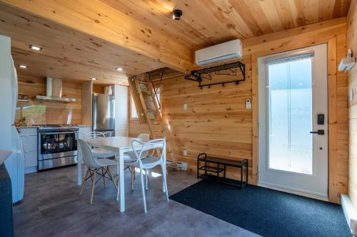 This chalet features a hot tub. Boasting a private entrance, this air-conditioned chalet features 1 living room, 1 separate bedroom and 1 bathroom with a hairdryer. The well-equipped kitchen has a stovetop, a refrigerator, a dishwasher and kitchenware. Among the room amenities are a washing machine, a tea and coffee maker, tumble dryer as well as a patio and lake views. The unit has 2 beds.