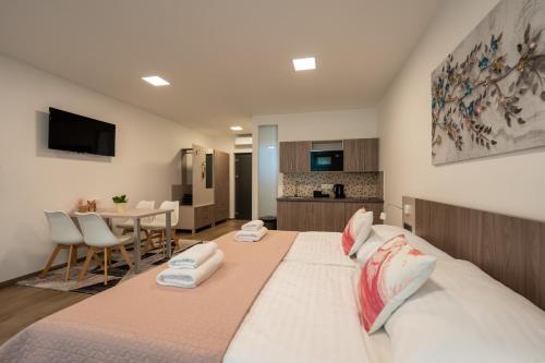 Boasting a private entrance, this air-conditioned apartment comes with a kitchenette, 1 bedroom and 1 bathroom with a shower and a hairdryer. Guests can make meals in the kitchenette that features a stovetop, a refrigerator, kitchenware and a microwave. Featuring a terrace with lake views, this apartment also features soundproof walls and a flat-screen TV. The unit has 2 beds.