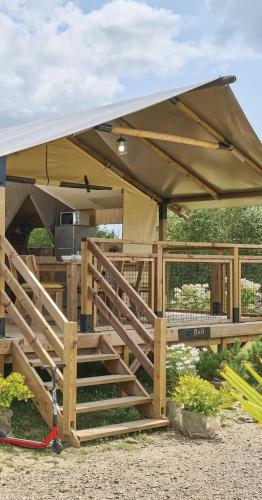 The fully equipped kitchenette features a stovetop, a refrigerator, kitchenware and a microwave. The tent provides a coffee machine, a seating area, as well as a terrace and outdoor furniture. The unit offers 5 beds.