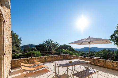 This holiday home boasts a pool with a view and a fireplace. Featuring a private entrance, this air-conditioned holiday home comprises 1 living room, 2 separate bedrooms and 1 bathroom with a walk-in shower. Guests will find a stovetop, a refrigerator, a dishwasher and kitchenware in the fully equipped kitchen. The holiday home also provides guests with a barbecue. Boasting a terrace with garden views, this holiday home also provides a washing machine and a flat-screen TV with cable channels. The unit offers 2 beds.