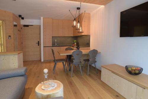 This Alpine-style apartment comes with wooden furnishings and floors, underfloor heating, and a balcony with mountain views. The private bathroom offers a shower and a hairdryer.