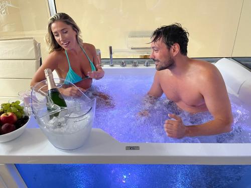Guests will have a special experience as the double room features a hot tub. Providing free toiletries and bathrobes, this double room includes a private bathroom with a walk-in shower, a bath and a bidet. The spacious air-conditioned double room provides a flat-screen TV with streaming services, a private entrance, soundproof walls, a minibar as well as city views. The unit offers 1 bed.