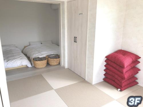 Featuring a private entrance, this air-conditioned apartment consists of 1 living room, 2 separate bedrooms and 1 bathroom with a bath and a shower. The fully equipped kitchen features a stovetop, a refrigerator, kitchenware and a microwave. The apartment provides a washing machine, tatami, a dining area, a flat-screen TV, as well as sea views. The unit offers 3 beds and 3 futons.
