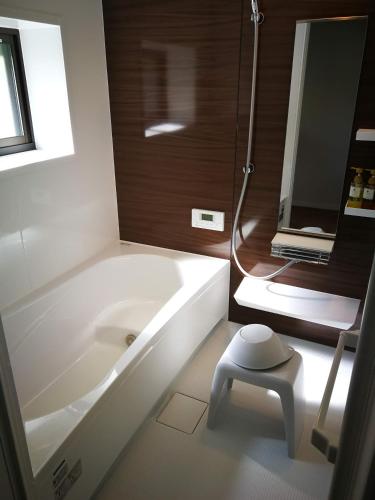 Boasting a private entrance, this air-conditioned holiday home features a kitchen, 2 bedrooms and 1 bathroom with a bath and a shower. Guests will find a stovetop, a refrigerator, kitchenware and a microwave in the fully equipped kitchen. The holiday home also comes with a barbecue. The holiday home features a flat-screen TV with streaming services, a washing machine, tatami, a tea and coffee maker as well as garden views. The unit has 5 futons.