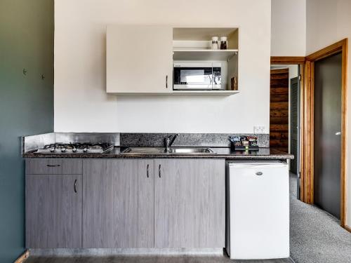 This studio style chalets feature a queen bed and single bed. There is a kitchenette and ironing facilities. These chalets are designed for easy access with handrails in the shower and toilet.