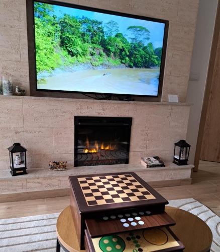 Guests will have a special experience as the apartment features a fireplace. Meals can be prepared in the well-fitted kitchen, which is equipped with a stovetop, a refrigerator, kitchenware and a microwave. Featuring a terrace with garden views, this apartment also provides a private entrance and a flat-screen TV with cable channels. The unit offers 2 beds.