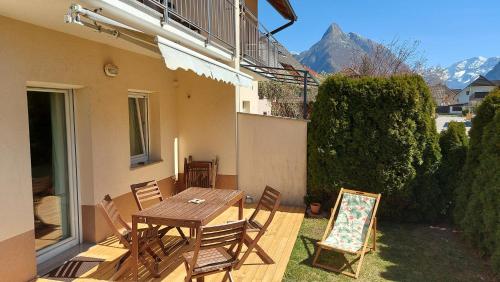 The apartment with a terrace and mountain views features 2 bedrooms, a living room, a flat-screen TV, an equipped kitchen with a dishwasher and an oven, and 1 bathroom with a shower. Towels and bed linen are featured in the apartment. There is also a seating area and a fireplace.
