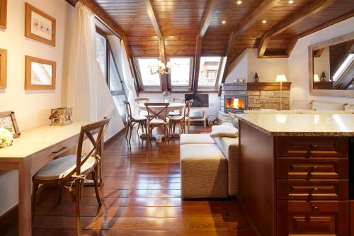 This apartment's special feature is the fireplace. Featuring a private entrance, this spacious apartment also comprises 1 living room, 4 separate bedrooms and 2 bathrooms with a shower. The fully equipped kitchen features a stovetop, a refrigerator, a dishwasher and kitchenware. The apartment has parquet floors, a seating area with a flat-screen TV, a washing machine, a tea and coffee maker as well as mountain views. The unit offers 7 beds.