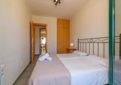 This apartment has 1 twin bedroom, 1 double bedroom and 1 bedroom with bunk beds, each with a balcony with access to the terrace. There is a living-dining room with a fireplace and a well-equipped kitchen.