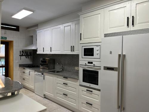 The spacious holiday home is fitted with 8 bedrooms, 5 bathrooms, bed linen, towels, a TV, a fully equipped kitchen, and a terrace with mountain views. The accommodation offers a fireplace.