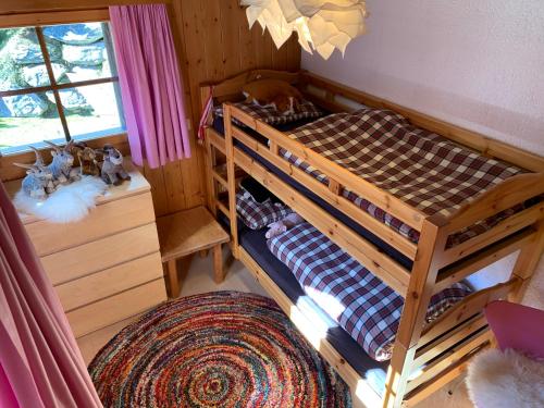 Chalet with jacuzzi, very comfortable for 8 to 10 people: ground floor: large cloakroom - 1st floor: Living room with soapstone stove - TV/DVD - kitchen with dishwasher, microwave, freezer and Nespresso coffee machine - WC - dining area - large south facing terrace with covered area, gas barbecue and jacuzzi - 2nd floor: 1 bedroom with 1 double bed (1.60m), TV, private shower/WC, dressing room and east balcony - 1 bedroom with 2 beds bunk beds and double bed (1.40m) on mezzanine - 1 bedroom with double bed (1.60m) and mezzanine with reading corner - 1 bedroom with double bed (1.40m) - WC – 1 bathroom with bathtub - washing machine and dryer - linen - 1 foldable cot - baby chair - free Wi-Fi internet access - 1 double garage with ski-room area - 150 m from the slopes - access by road - non-smokers - pets on request (supplement of CHF 60. -)This property will not accommodate hen, stag or similar parties.