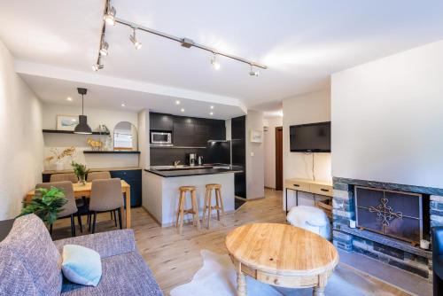 The apartment with a balcony and mountain views has 1 bedroom, a living room, a TV, an equipped kitchen with a dishwasher and an oven, and 1 bathroom with a bath. The accommodation offers a fireplace.