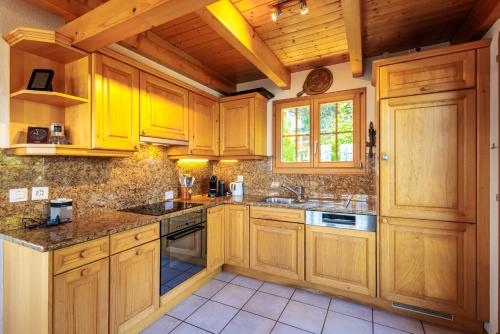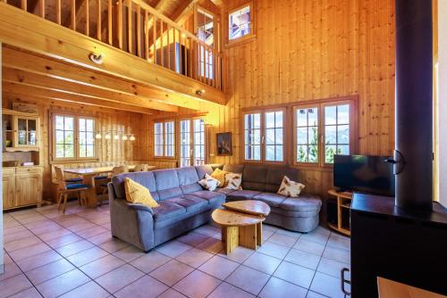 The spacious chalet with a terrace and mountain views features 3 bedrooms, a living room, a TV, an equipped kitchen with a dishwasher and an oven, and 2 bathrooms with a shower. The accommodation offers a fireplace.