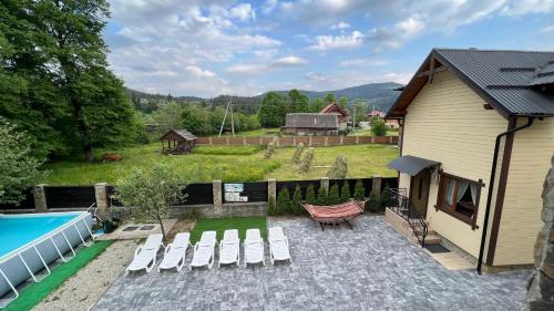 Arkan is situated in Mykulychyn and has a heated pool and river views. There is a private entrance at the holiday home for the convenience of those who stay. There is an outdoor fireplace and guests can make use of free WiFi and free private parking.